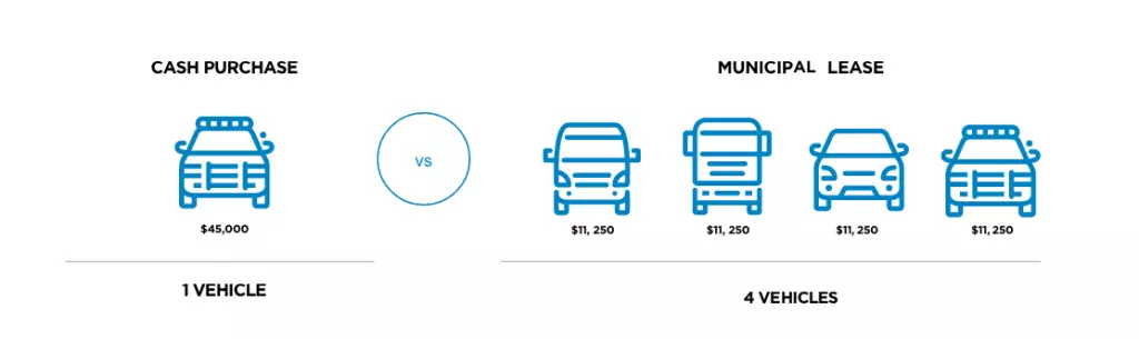 With a municipal lease, your dollars can get to work faster. For example, with a $45,000 annual budget, you could lease four vehicles for the price of purchasing only one.